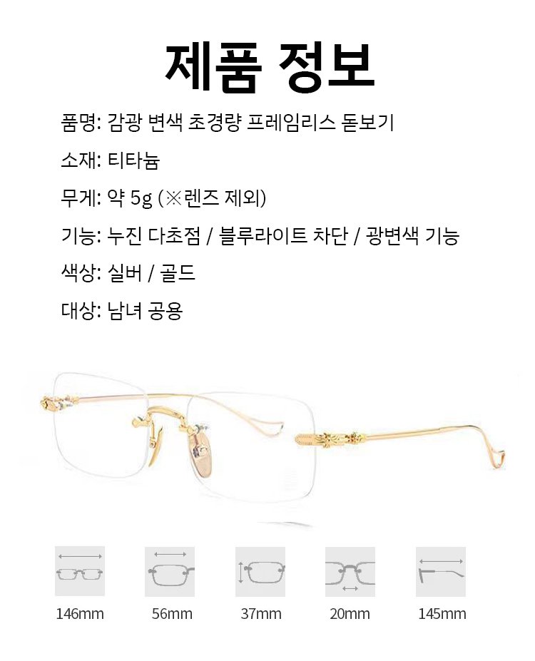 감광 변색 초경량 프레임리스 돋보기
